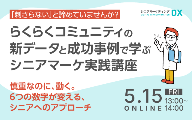 本講座では、シニアの行動特性を6つのデータで整理し、健康食品・金融・観光業界の成功事例とともに、効果的なシニアマーケティングの実践手法をお伝えします