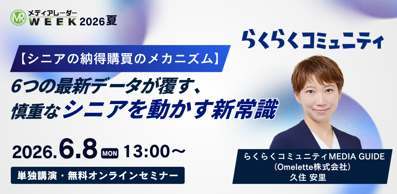 購買力を持ちながらも、テレビ・新聞といった従来のマスメディア中心のアプローチだけでは態度変容に至りにくいシニア層。その攻略に課題を感じている広告主・代理店のご担当者は少なくありません。本セミナーでは、シニア・高齢者層の行動特性を最新データで整理したうえで、以下の業界における具体的な成功事例をご紹介します。